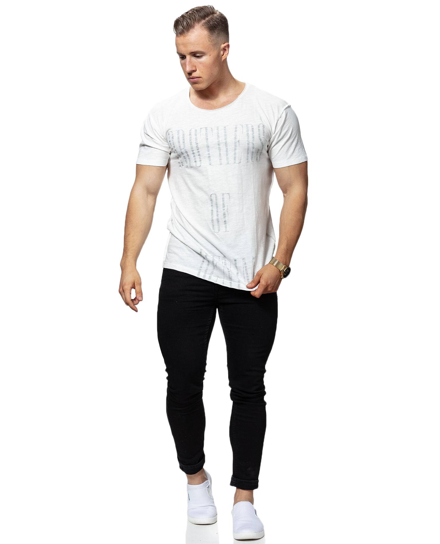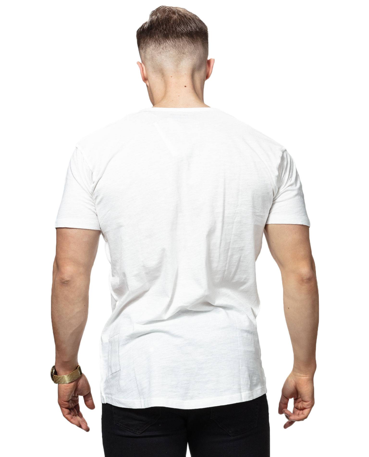 JACK & JONES white t-shirt. A slightly looser model that goes great with black jeans and a leather jacket in the spring. The print has an inner print that hears through the front.