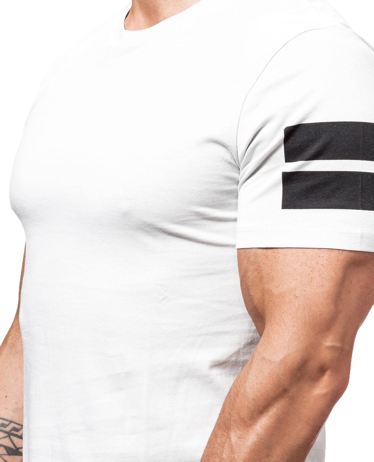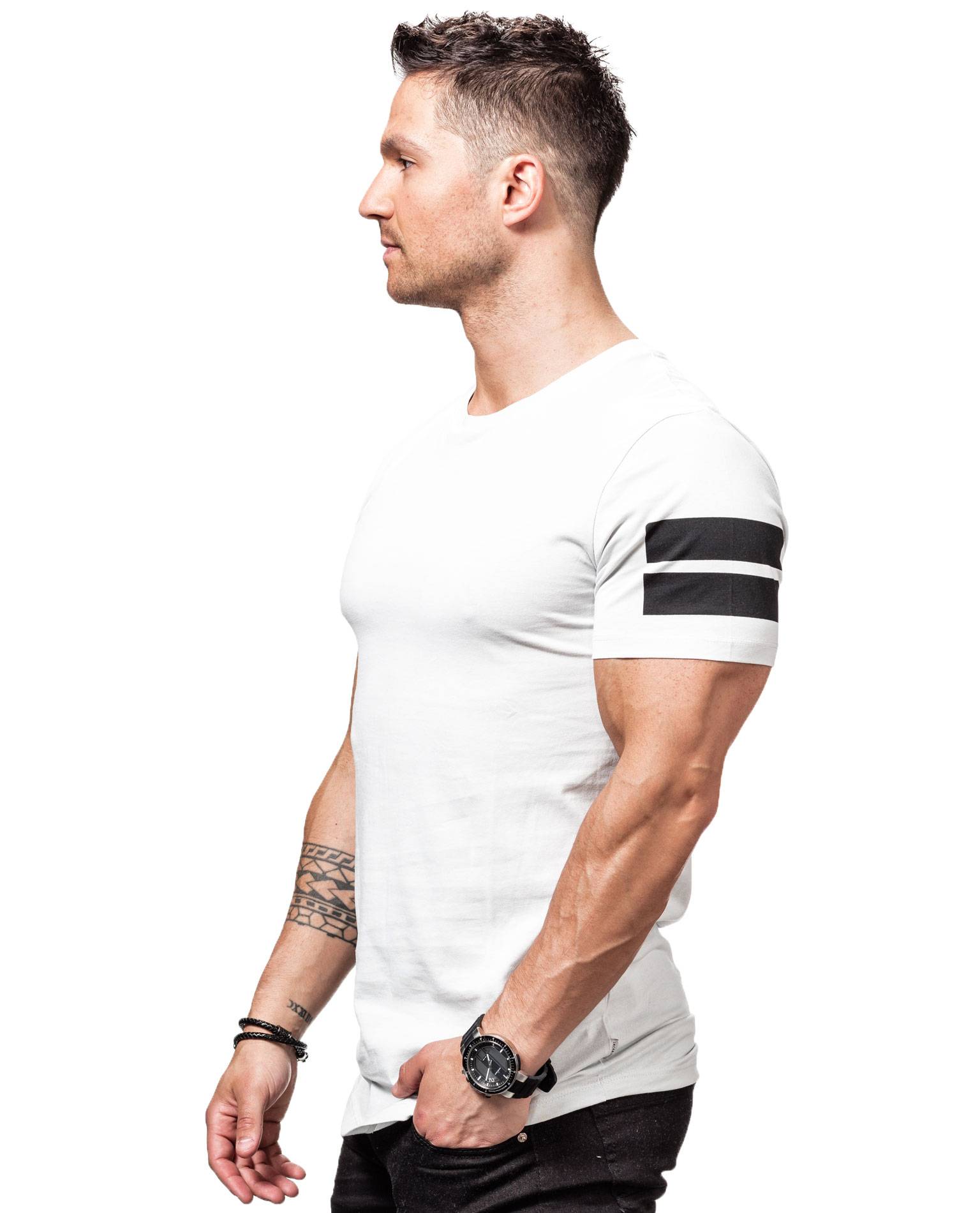JACK & JONES white t-shirt. Striped pattern on sleeves, logo on hem.