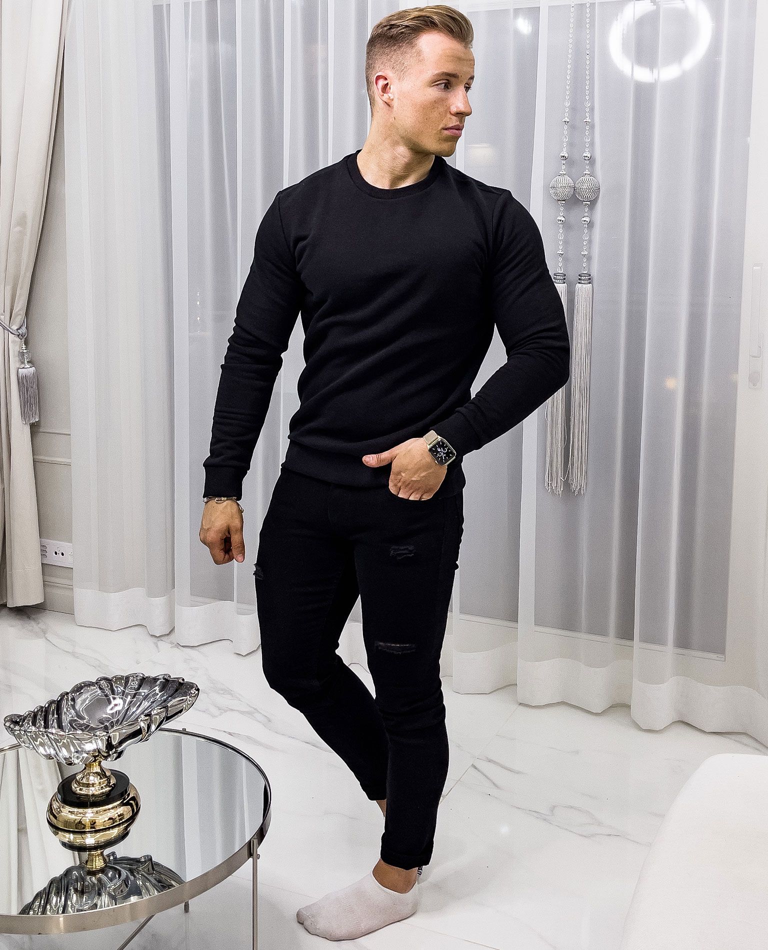 ONLY & SONS black sweatshirt. Soft, brushed surface inside. An excellent basic shirt for everyday and home use. Elasticated hem and sleeves.