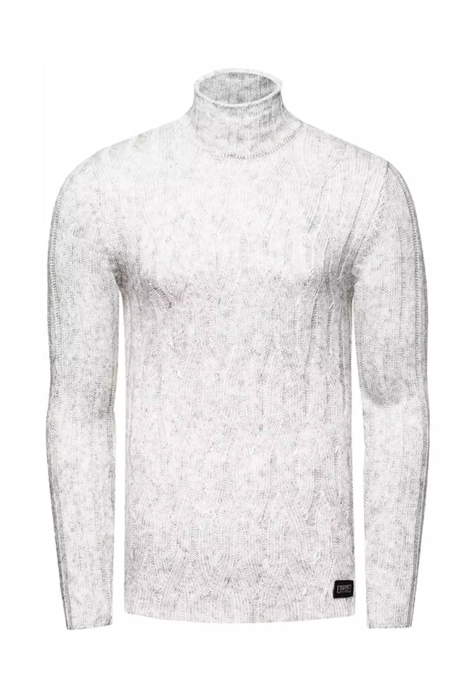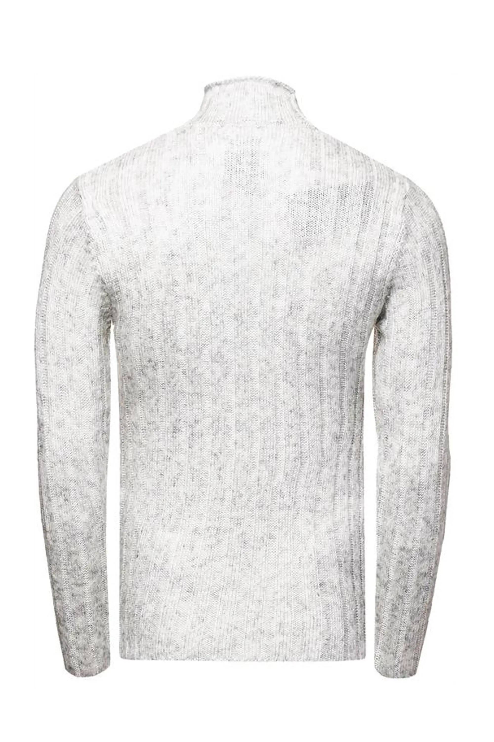 Men's light gray sweater from the brand RUSTY NEAL. Stand-up collar, trendy pattern on the surface and logo on the hem.