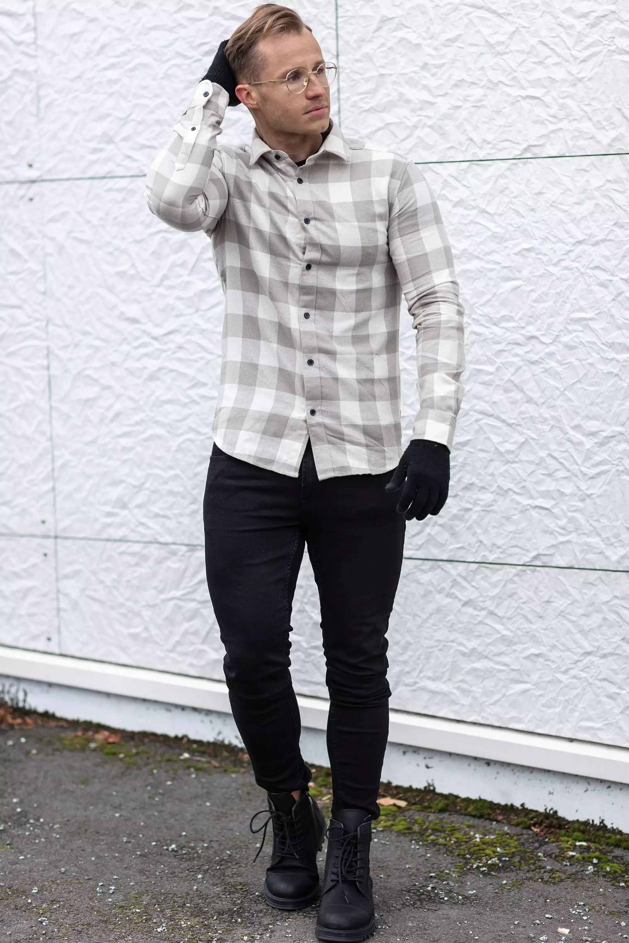 ONLY & SONS light check shirt. Plaid shirts are perfect for fall! The product can be worn open or closed, combined with a leather jacket and black jeans. Classic button fastening, logo on the hem.