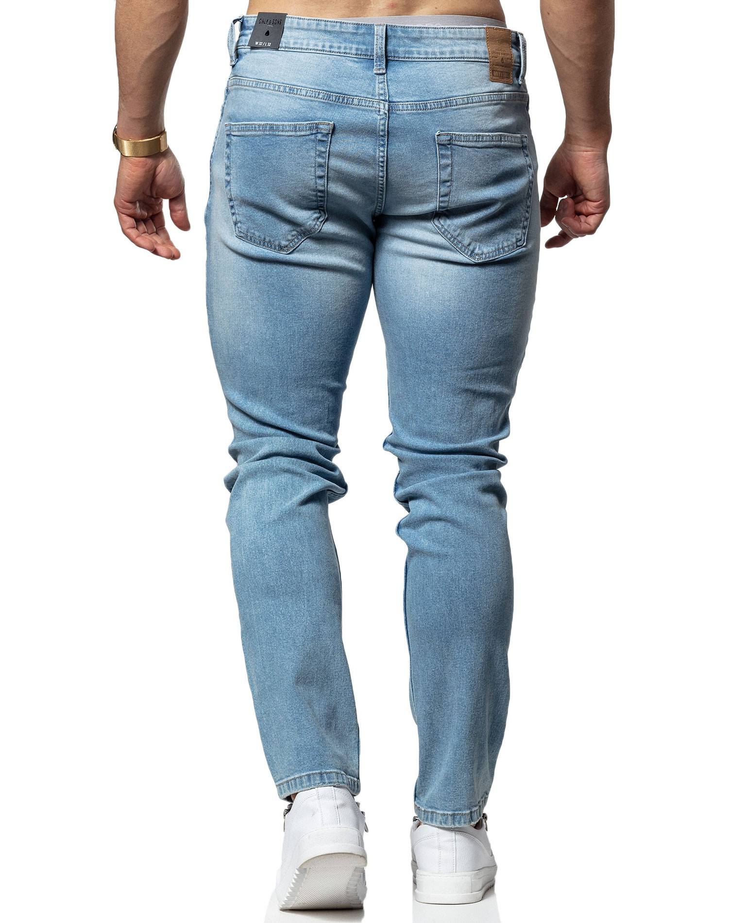 ONLY & SONS light blue jeans. Very flexible material, comfortable to wear. Broken surface in the knees. Two front and back pockets. Gently stonewashed throughout. Length L34.