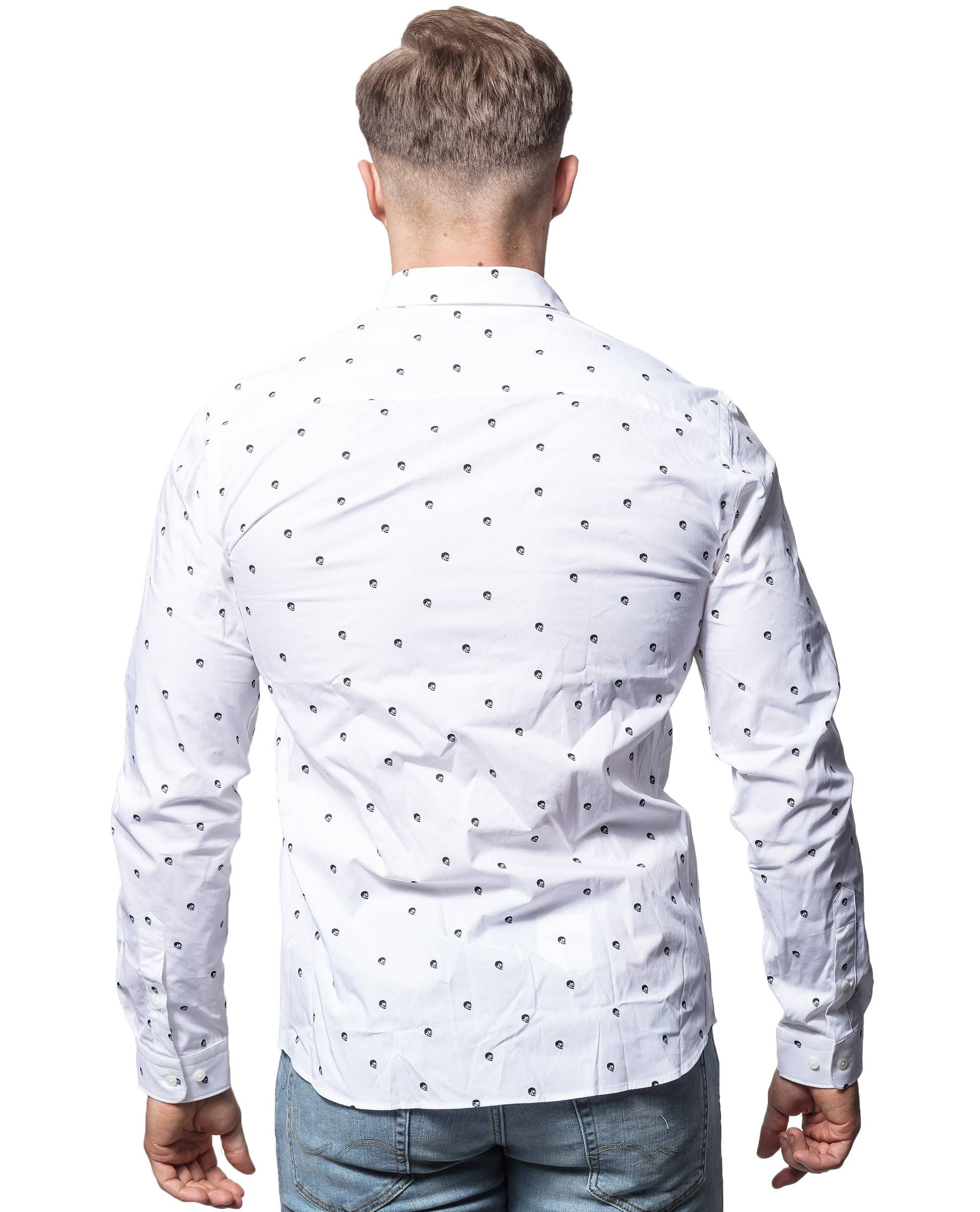 JACK & JONES premium white collared shirt, Neat skull prints throughout. Classic button fastening, collar and buttons at the cuffs.